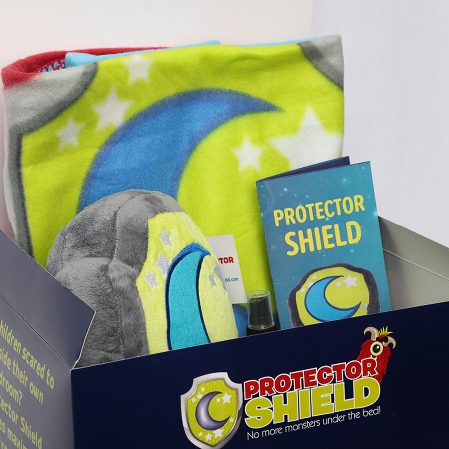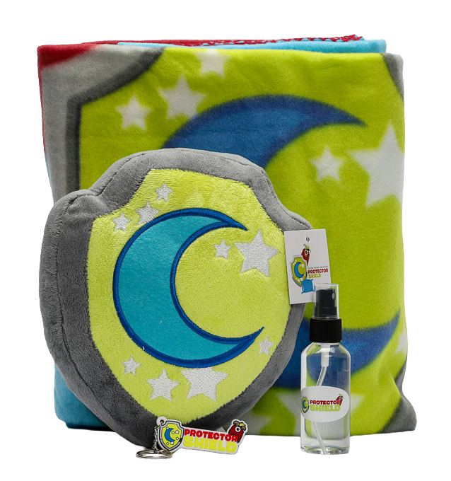 Buy NowParents! All you need to do is order our special products developed by highly trained wizards at Protector Shield headquarters and give it to your child to sleep with! Wrap your child in our super cozy blanket with the Protector Shield logo or spritz your loved one with our special magic spray! But the best protection of all will be our stuffed shield. Take the shield anywhere! Not only is it great to snuggle with, you can get rid of monsters by putting it in your closet, under the bed, in the bathroom, or anywhere monsters may try and hide. Stay protected!